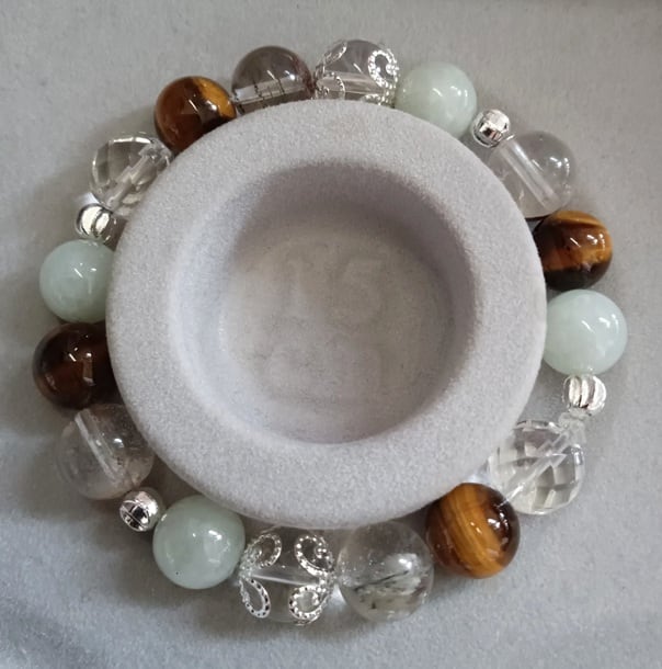翡翠は健康運を高め愛を象徴します。そして、財運を向上させると言われています。ピンチに立ち向かう力を引き出してくれると同時に、積極的なエネルギーと情熱をもたらすでしょう。タイガーアイは勇気や自信を引き出し、ガーデンクォーツは癒しや安定感を与えてくれます。水晶は浄化や活性化の力を持ち、身体や心を整える助けとなります。