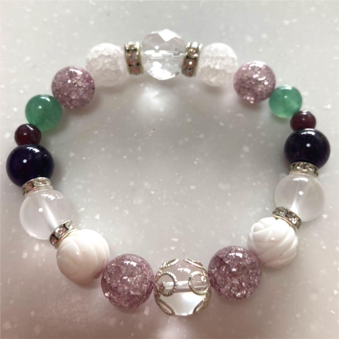 アメジストは心の平穏をもたらし、レピドライトはストレスを和らげ、アベンチュリンは運気を上げるパワーを持っています。