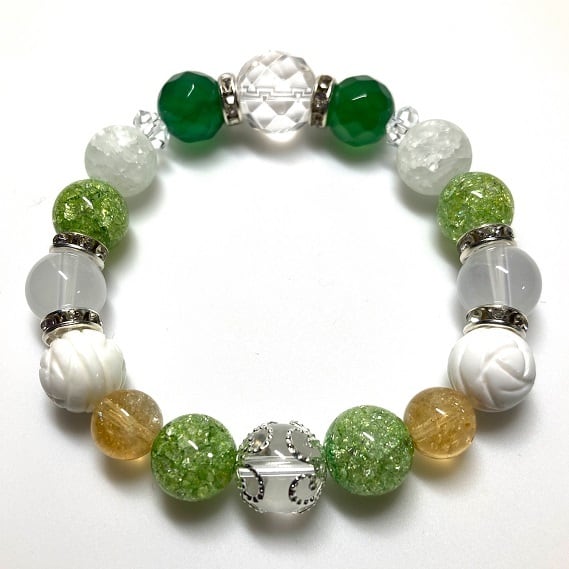 シトリンは豊かさや成功を引き寄せる力を持ち、オニキスは落ち着きや安定感を与え、水晶は浄化やパワーを高める効果があります。いつでもどこでも身につけることができるので、厄除けや運気アップにも効果的です。これ一つで、あらゆる石のエネルギーを手に入れることができます。