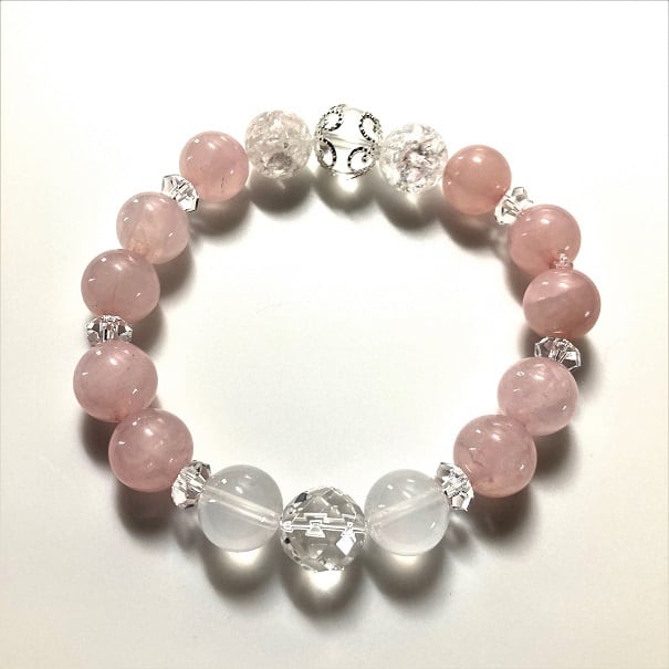 Rosesi パワーストーンブレスレット 天然石 ローズクォーツ 水晶