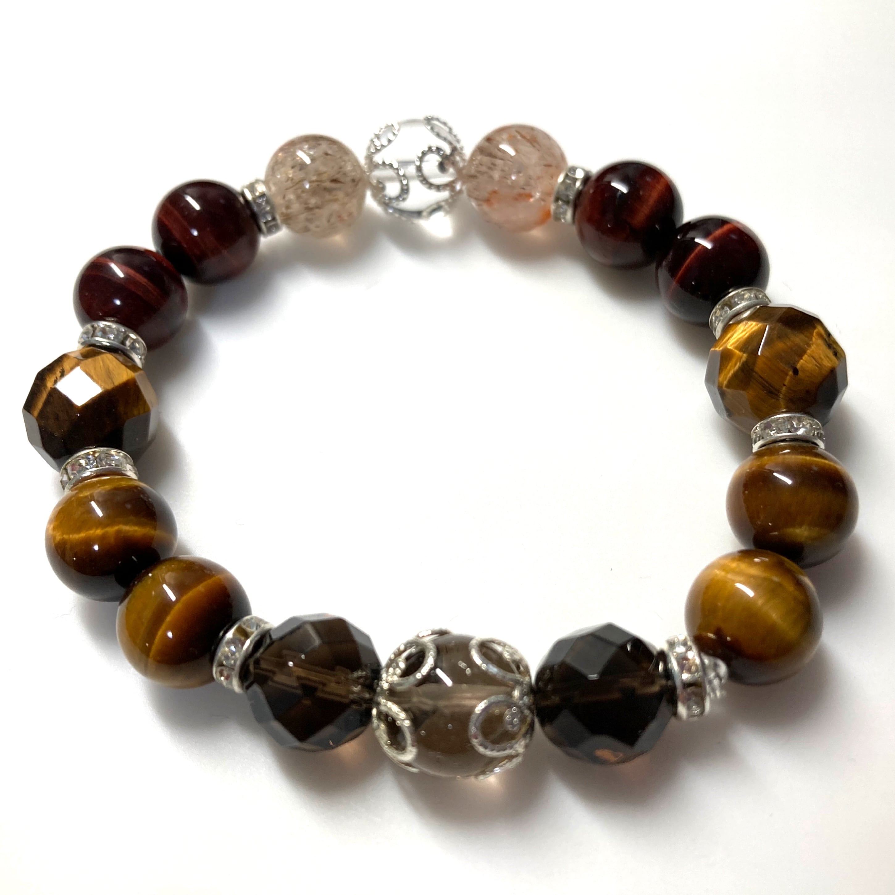 スーパーセブンは強力なパワーを秘めた石であり、持ち主の内面のバランスを整えると言われています。タイガーアイは自己主張を強め、自信と勇気を与えてくれます。美しい石の色合いとエネルギーを活かし、心身のバランスを整える効果が期待できます。スモーキークォーツは心を癒し、自己肯定感を高める作用があります。