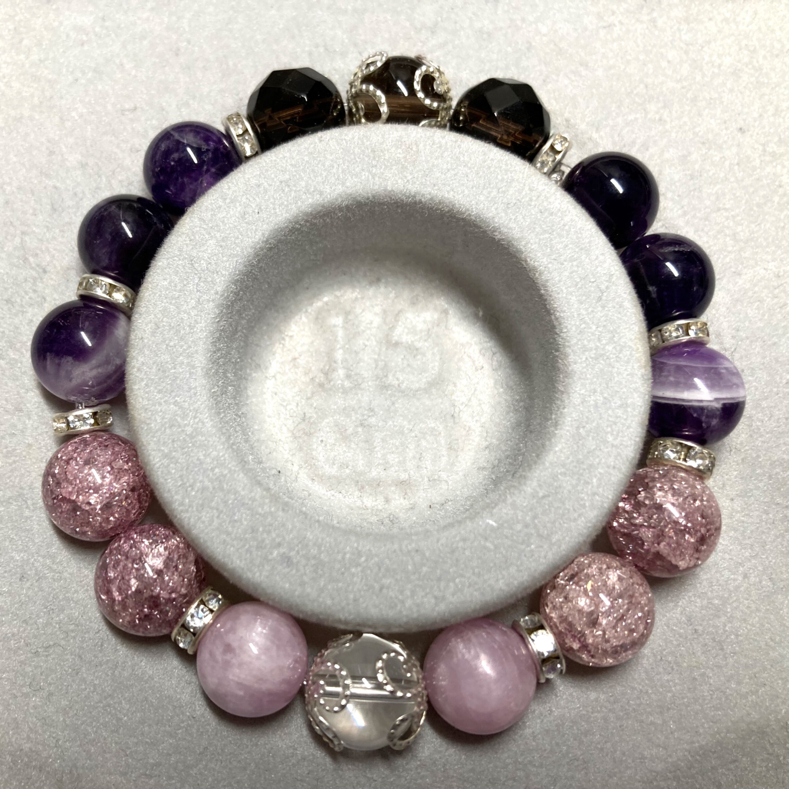 アメジストは安眠に効果的なパワーストーンとして知られており、クンツァイトは純粋な愛と平和をもたらす石。無限の愛と純粋性を象徴する石です。