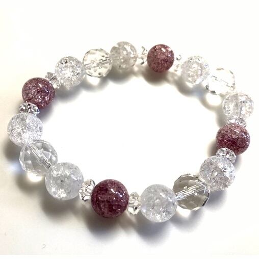 cryPAクリスタル 水晶パワーストーンブレスレット 天然石 金属アレルギー紫purple