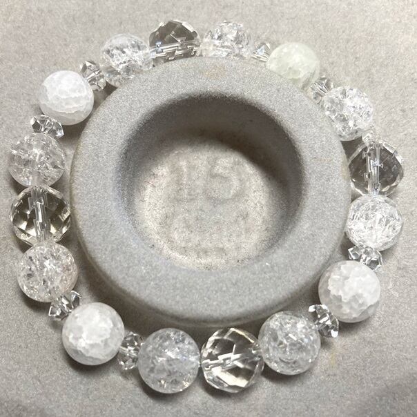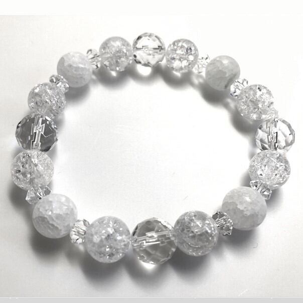 cryWHIクリスタル 水晶パワーストーンブレスレット 天然石 金属アレルギー ホワイト白